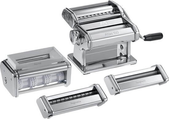 Deze Multi pastamachine beschikt over een gewone Marcata Atlas 150 pastamachine omvat een Atlas 150 pastamachine met accessoires voor het maken van lasagne, fettuccine en tagliolini en drie extra accessoires voor spaghetti, reginete en raviolini.